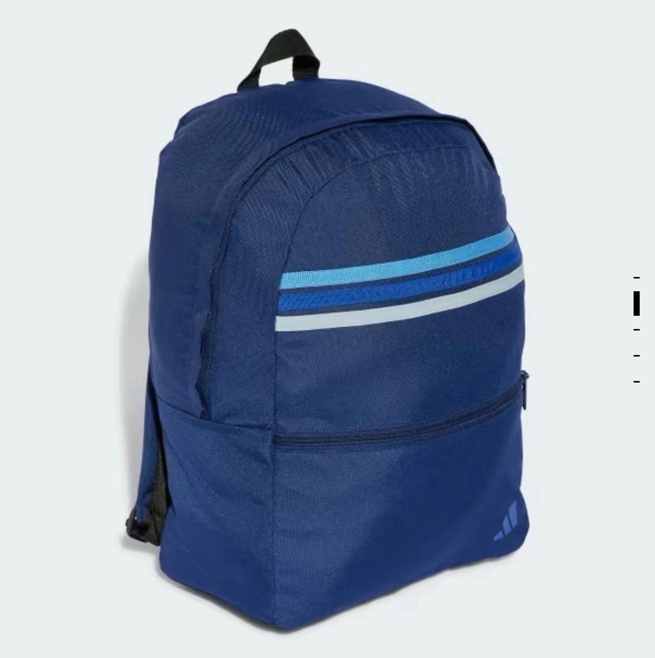 This adidas backpack keeps things simple. Padded straps let you carry it comfortably, while slip-in side pockets and a front zip pocket keep essentials within easy reach. Triple colour 3-Stripes add the finishing touch. This product is made with at least 50% recycled materials. By reusing materials that have already been created, we help to reduce waste and our reliance on finite resources and reduce the footprint of the products we make.