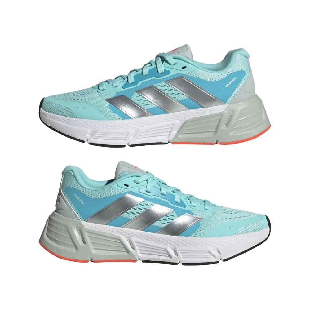 Reach for new goals in this women's running shoe. With its Bounce midsole cushioning, you'll have plenty of energy to take on every mile. Mesh and synthetic materials create a breathable upper, while foam padding provides comfort on the go. Get ready to run far with the adidas Questar 2 Bounce shoes.