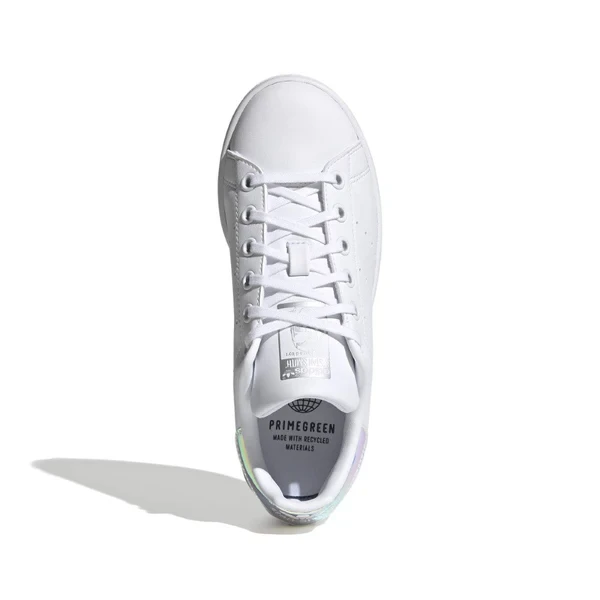 Every generation has made the Stan Smith their own. Now, it's your turn. These juniors' shoes have the same clean look and crisp feel as the original. What's different? The materials. Recycled components are part of adidas' commitment to reduce waste. Time to lace in and start a brand-new story.