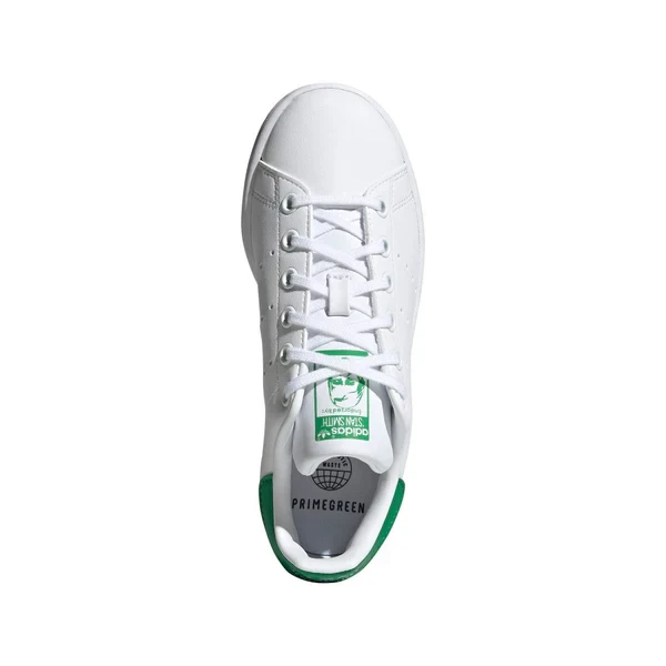 Every generation has made the Stan Smiths their own. Now, it's your turn. These juniors' shoes have the same clean look and crisp feel as the original. What's different? The materials. Recycled components are part of adidas' commitment to reduce waste. Time to lace in and start a brand-new story. This product is made with Primegreen, a series of high-performance recycled materials. 50% of upper is recycled content. No virgin polyester.
