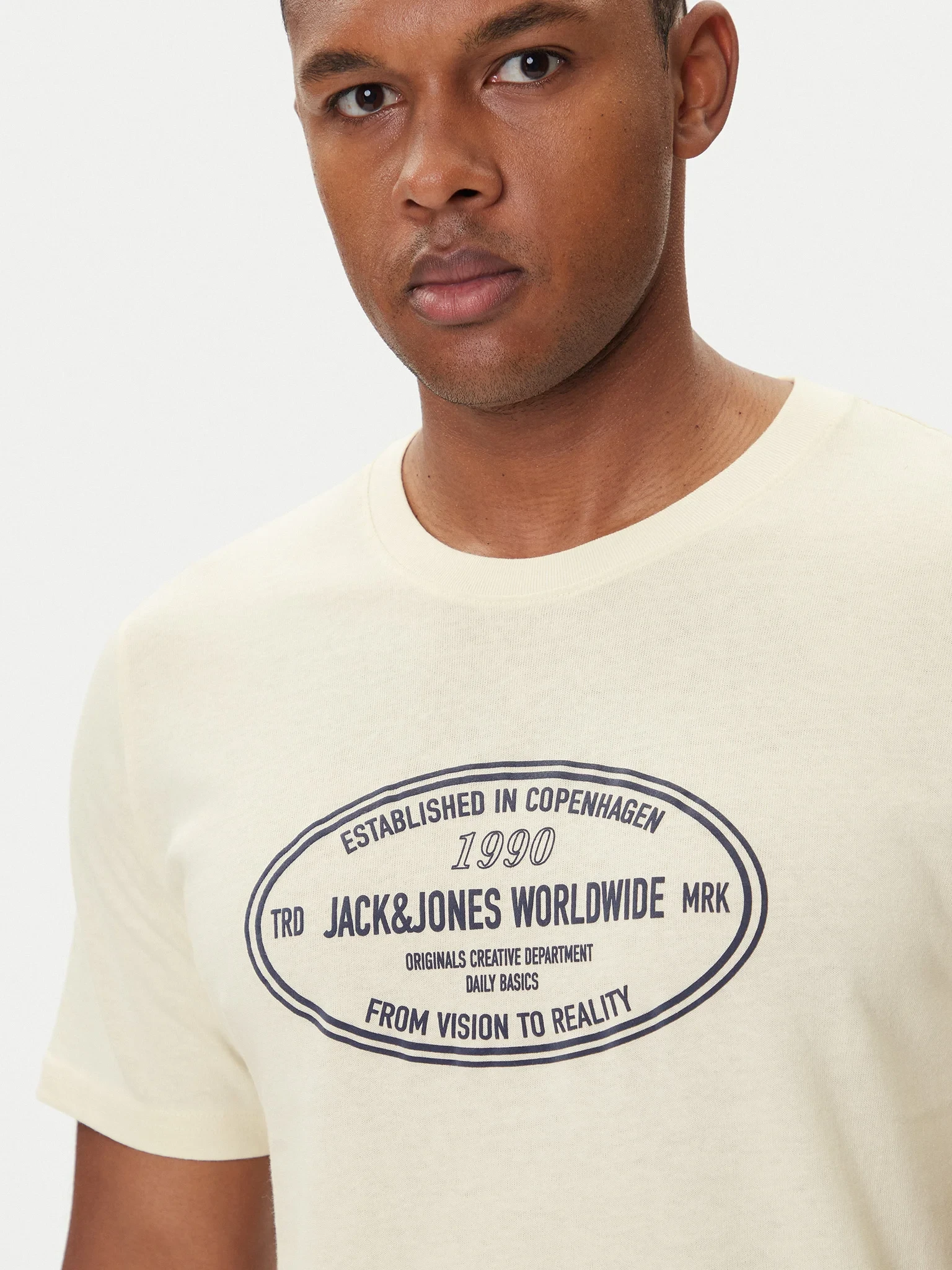 Jack & Jones men's short-sleeved shirt features a round neckline in rib weave and cotton fabric for a comfortable feel all day long. The print adds style to the outfit.