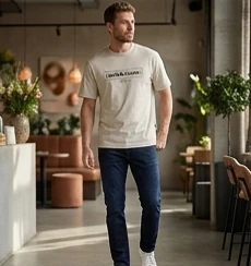 JACK & JONES JCOALPHA FRONT PRINT TEE SS CREW NECK -MOONBEAN