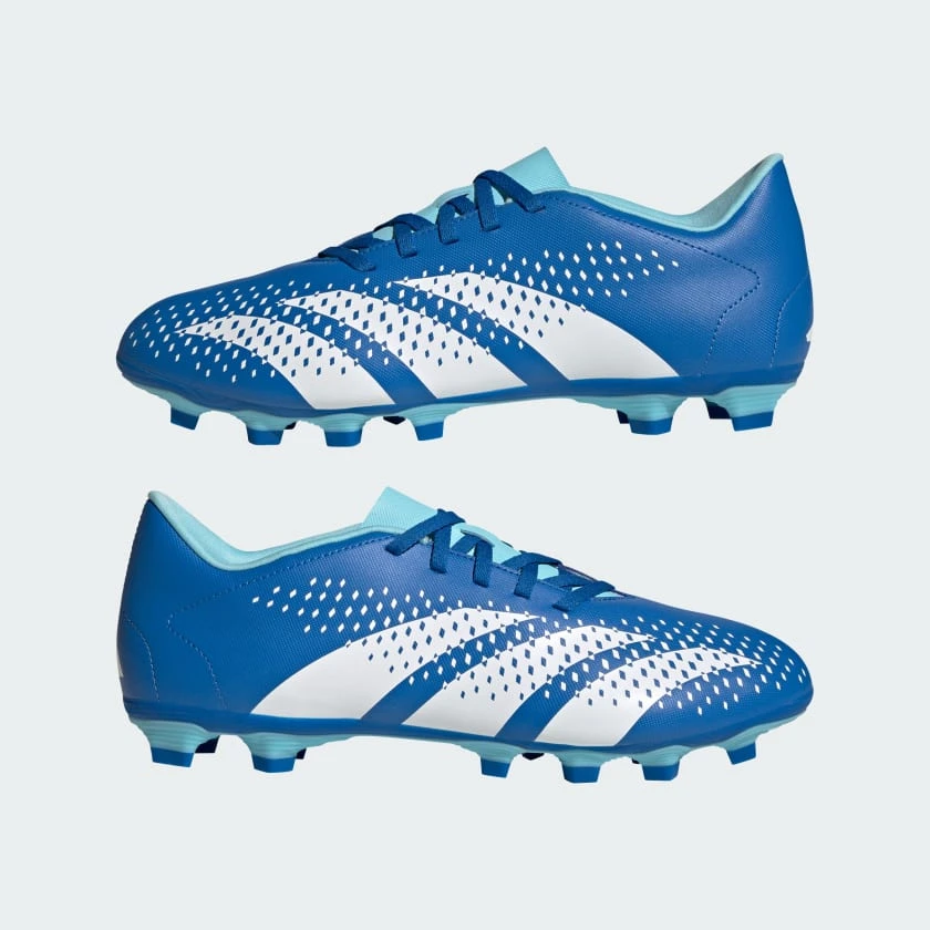Top corner. Bottom corner. All the corners. adidas Predator Accuracy is crafted for goalscoring, so you know the ball will find the net. The fun's in choosing how it gets there. The comfortable synthetic upper on these football boots has a slightly textured finish. The outsole is designed to keep you in control on a variety of surfaces including firm ground, hard ground and artificial grass. Made with a series of recycled materials, this upper features at least 50% recycled content. This product represents just one of our solutions to help end plastic waste.