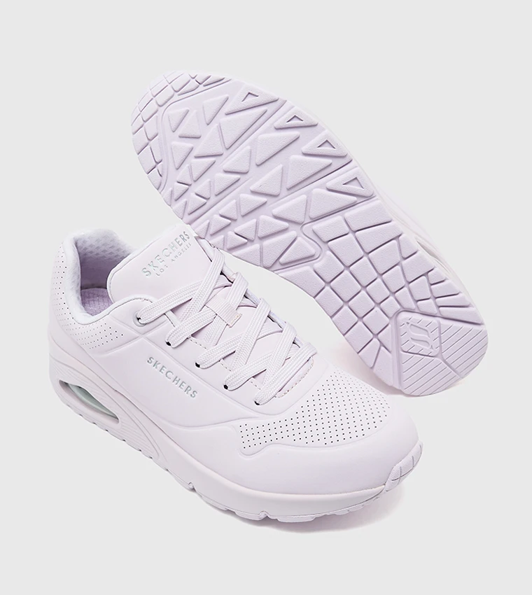 Classic air cushioning comfort gets a fresh look with the Skechers Street Uno Stand-On Air sneakers. This stylish shoe features a lace-up front and a soft upper with perforated details for a modern touch, along with an air-cooled memory foam insole for all-day comfort and a visible Skech Air midsole for excellent shock absorption and stability with every step.
