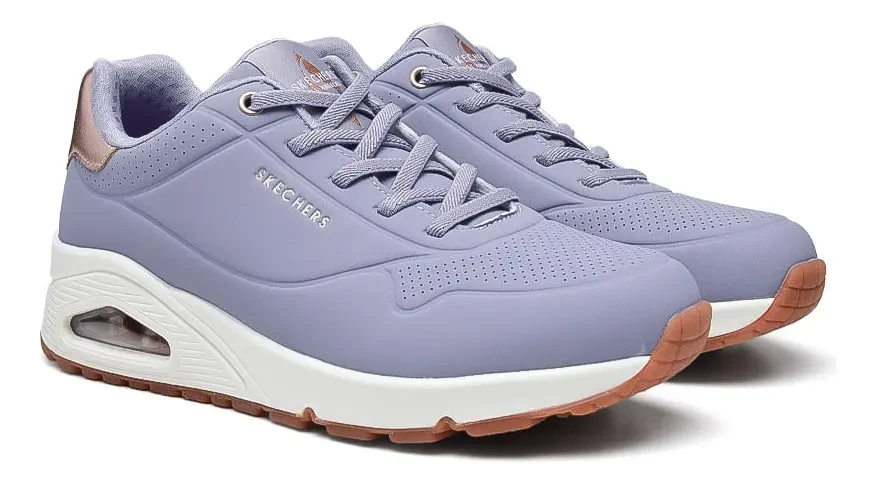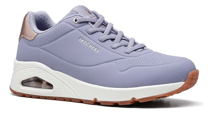Embrace classic style this season with the Skechers Street™ Uno Shimmer Away sneaker. These stylish sneakers are designed to elevate your everyday look while providing exceptional support and cushioning. The upper is made of durable Dura-Pock synthetic material, ensuring longevity and a sleek appearance. Metallic heel trim adds a touch of subtle shine, enhancing the overall aesthetic. The design includes elastic laces for a secure and comfortable fit, making them easy to slip on and off. Inside, you'll find Skechers Air-Cooled Memory Foam® insole, which adapts to the shape of your foot, providing customized comfort and support with every step. This innovative insole helps keep your feet cool and comfortable, even during extended wear. The Skech-Air® midsole with visible air cushioning is a standout feature, offering superior shock absorption and cushioning. This technology not only enhances comfort but also adds a sporty, modern touch to the design. The wedge design provides a subtle lift, adding a touch of sophistication to the classic sneaker silhouette. These sneakers are perfect for a variety of occasions, from casual outings to everyday wear. The combination of style, comfort, and durability makes them a versatile addition to any wardrobe. Skechers Street™ Uno - Shimmer Away sneakers are designed for women who appreciate both fashion and practicality. The stylish design and comfortable features make them ideal for all-day wear, whether you're running errands, meeting up with friends, or simply enjoying a fun day out. The metallic heel trim adds a touch of sophistication, while the elastic laces ensure a secure and comfortable fit. Skechers' Air-Cooled Memory Foam® insole and Skech-Air® midsole with visible air cushioning work together to provide exceptional cushioning and support, making these sneakers a joy to wear. Experience the perfect blend of style and comfort with Skechers Street™ Uno - Shimmer Away sneakers. These sneakers are a testament to Skechers' commitment to quality and innovation, offering a stylish and comfortable footwear option for the modern woman. The robust construction and thoughtful design details ensure that these sneakers will become a favorite in your footwear collection.