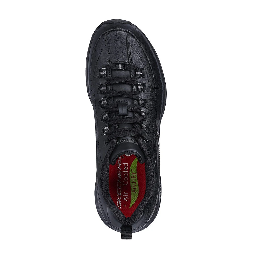 Increase your support and optimize your comfort wearing Skechers Work™: Arch Fit SR - Trickell II. This slip-resistant work lace-up features a leather and synthetic upper, removable Arch Fit® cushioned insole and a lightweight flexible midsole.