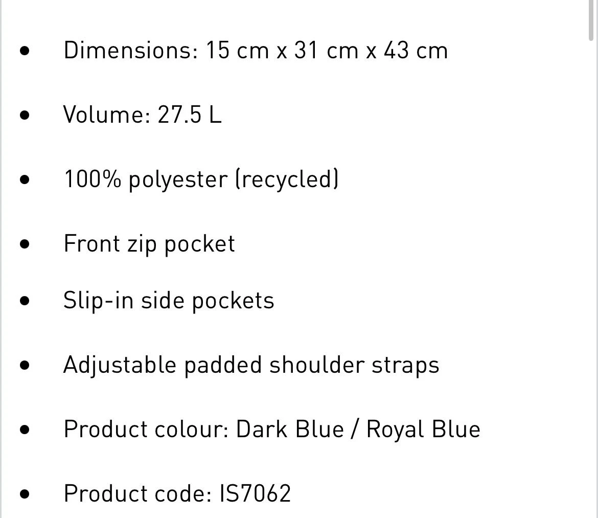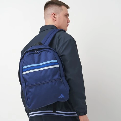 This adidas backpack keeps things simple. Padded straps let you carry it comfortably, while slip-in side pockets and a front zip pocket keep essentials within easy reach. Triple colour 3-Stripes add the finishing touch. This product is made with at least 50% recycled materials. By reusing materials that have already been created, we help to reduce waste and our reliance on finite resources and reduce the footprint of the products we make.