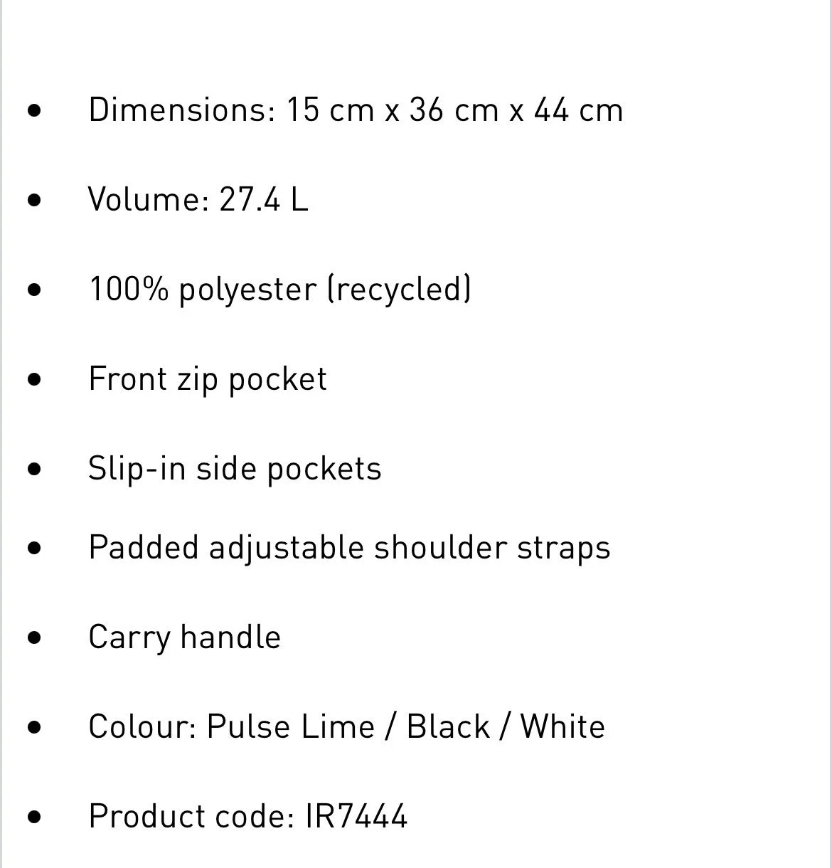 From the trail to town and anywhere in between, your essential gear goes with you. This adidas backpack let's you carry it all in comfort and style. Store items in the front zip pocket and side pockets for easy access on the move. Adjustable shoulder straps keep the load feeling light. This product is made with at least 50% recycled materials. By reusing materials that have already been created, we help to reduce waste and our reliance on finite resources and reduce the footprint of the products we make.