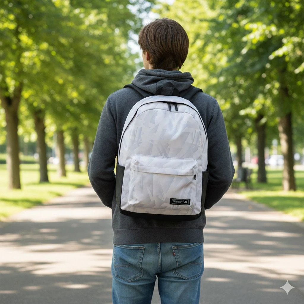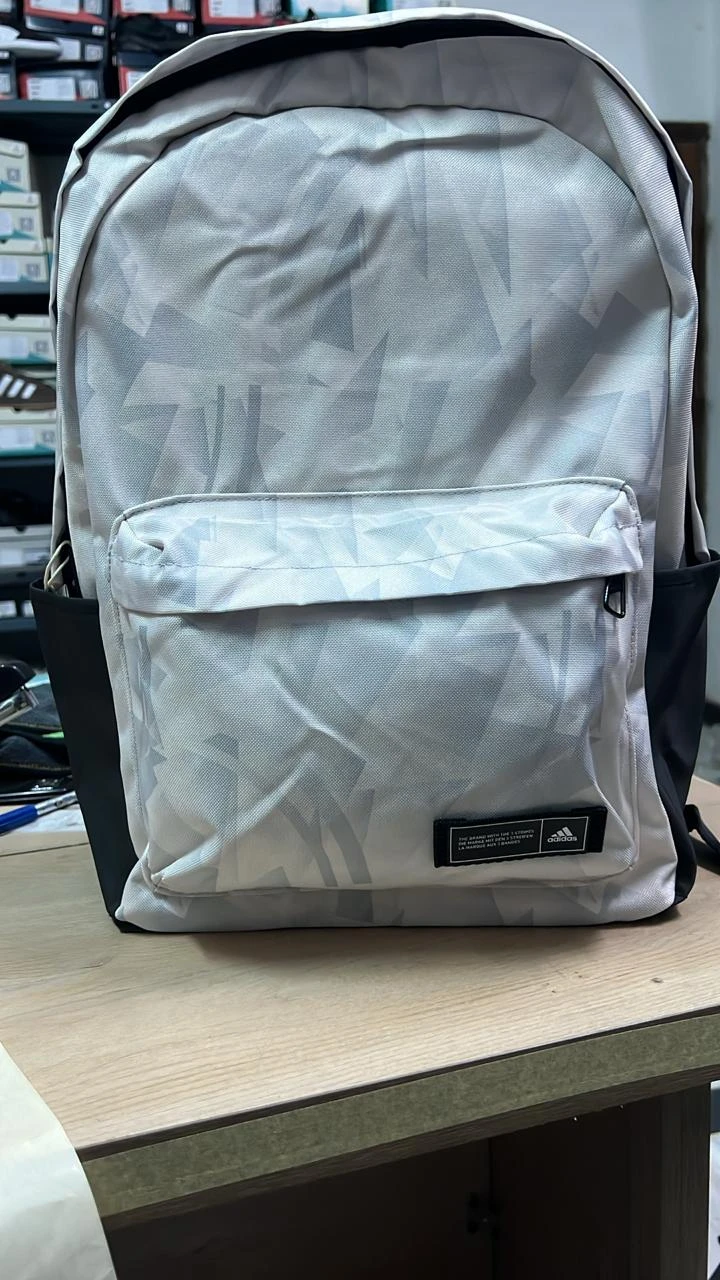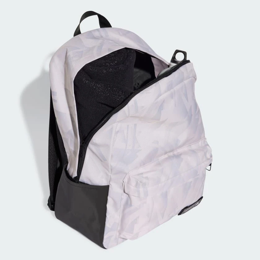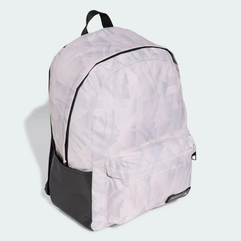 A classic pack with an edgy look. This adidas backpack lends fresh attitude to your casual outfits thanks to a cool allover print. Roomy enough for all your essential gear, it has a zip main compartment, front zip pocket and side slip-in pockets to keep everything organised. Padded adjustable straps add comfort if the bag gets heavy. This product is made with at least 50% recycled materials. By reusing materials that have already been created, we help to reduce waste and our reliance on finite resources and reduce the footprint of the products we make.