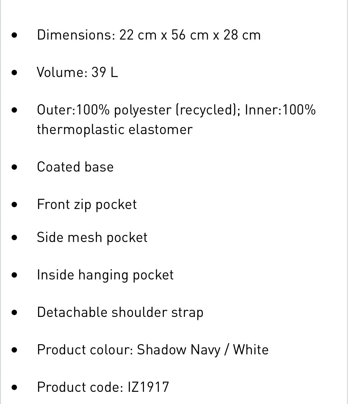 Ready, set, train. This versatile adidas duffel bag goes where you go, ready for whatever workout you have planned. Spacious enough for all your gear yet compact for easy carrying, the bag is built tough from durable polyester spacer. Multiple pockets keep your essentials organised and within easy reach. A detachable shoulder strap lets you sling this bag comfortably across your body as you sprint between work and training. This product is made with at least 50% recycled materials. By reusing materials that have already been created, we help to reduce waste and our reliance on finite resources and reduce the footprint of the products we make.