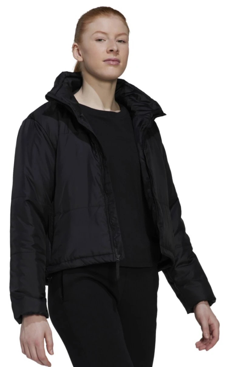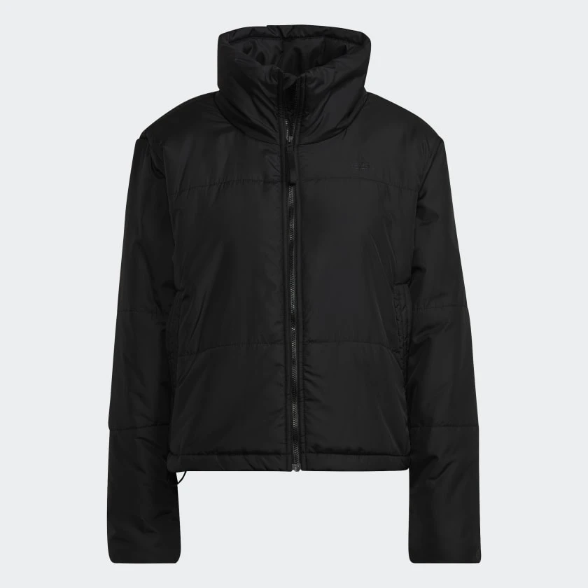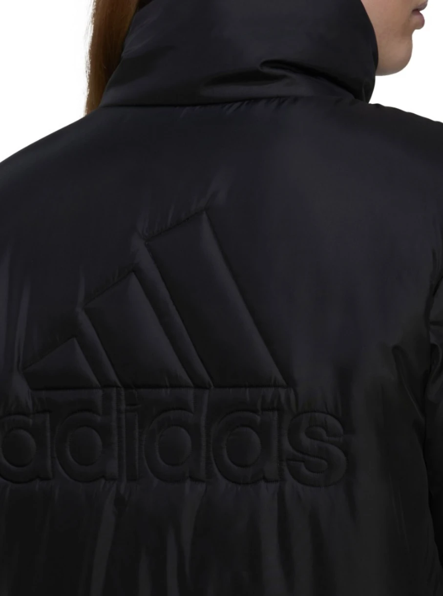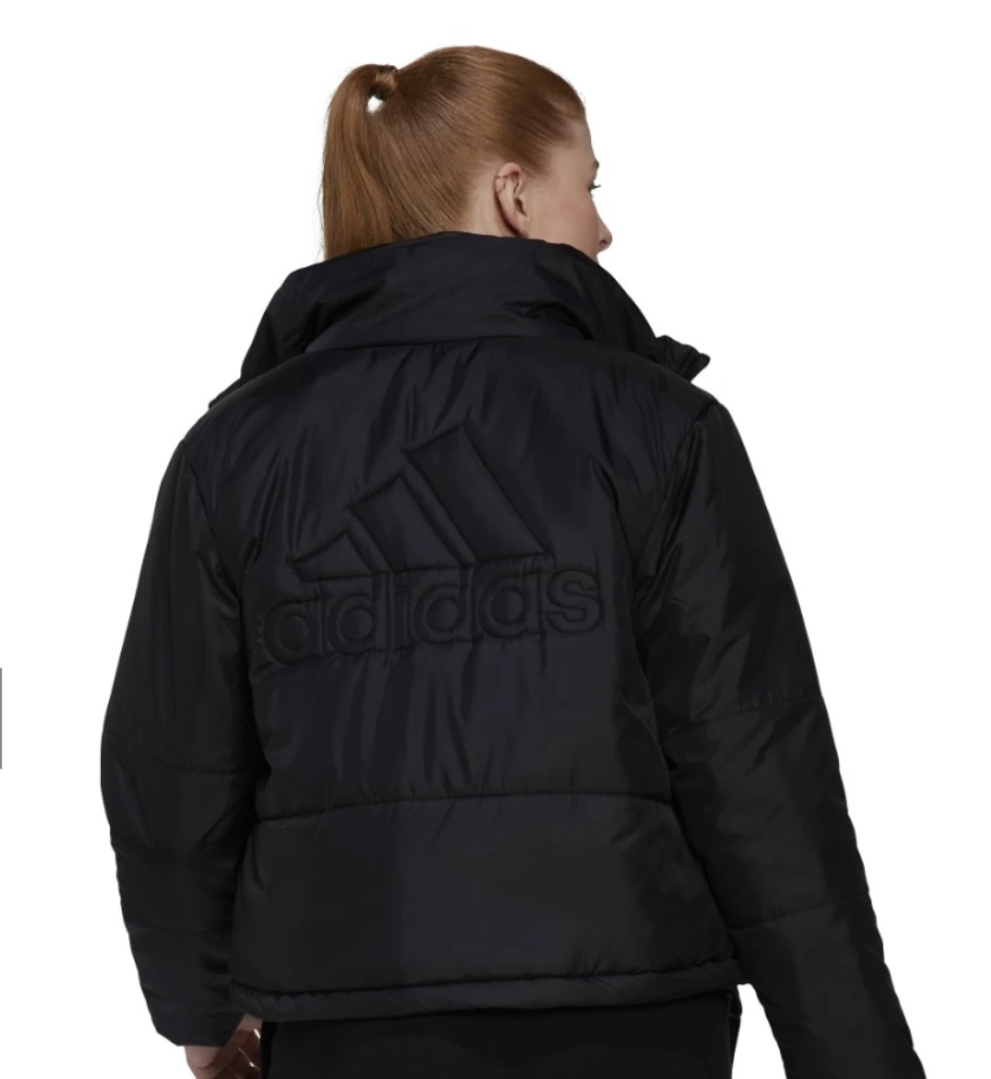 Stay warm without compromising your style. This adidas puffy jacket has a loose, relaxed fit and slightly shorter cut for a modern look that goes with everything. Large baffles and synthetic insulation seal in heat to keep you warm on cold winter days. Elastic cuffs and an adjustable hem seal in heat for a cosy feel on cold days. Zip pockets keep hands warm and your keys or phone within easy reach.