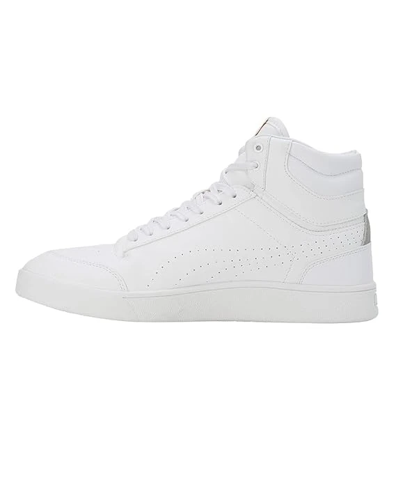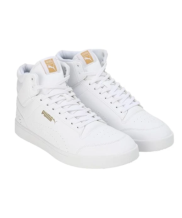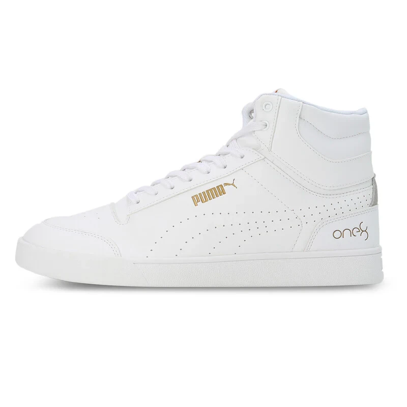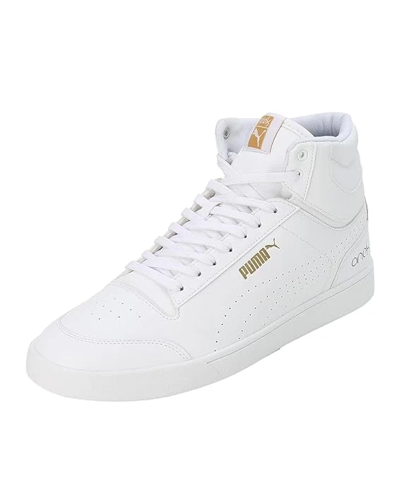About PUMA x one8Energize your athletic spirit with PUMA x one8 Virat Kohli collection. Echoing Virat's favourites, the dynamic sportswear and athleisure line supports both vigorous workouts and relaxed outings. Designed for the active individual, this iconic collection celebrates the transformative power of sport. Embrace a faster, better, forever lifestyle and live your game! Product StoryUnveiling the Shuffle Mid one8 Better V2 Men's Sneakers, a fresh take on sports footwear that marries fashion and function. The perforated synthetic upper allows for breathability while the mid-boot silhouette gives it an ultra-modern appeal. Further boosting its performance credentials is the rubber outsole that promises exceptional traction and support. DetailsSynthetic & Mesh Upper provides breathability & durabiltyLow boot construction with lace closurePUMA Logo for subtle brandingRubber Outsole for traction - Men's PUMA Shuffle Mid One8 Better V2 Sneakers in White/Gold size UK 8