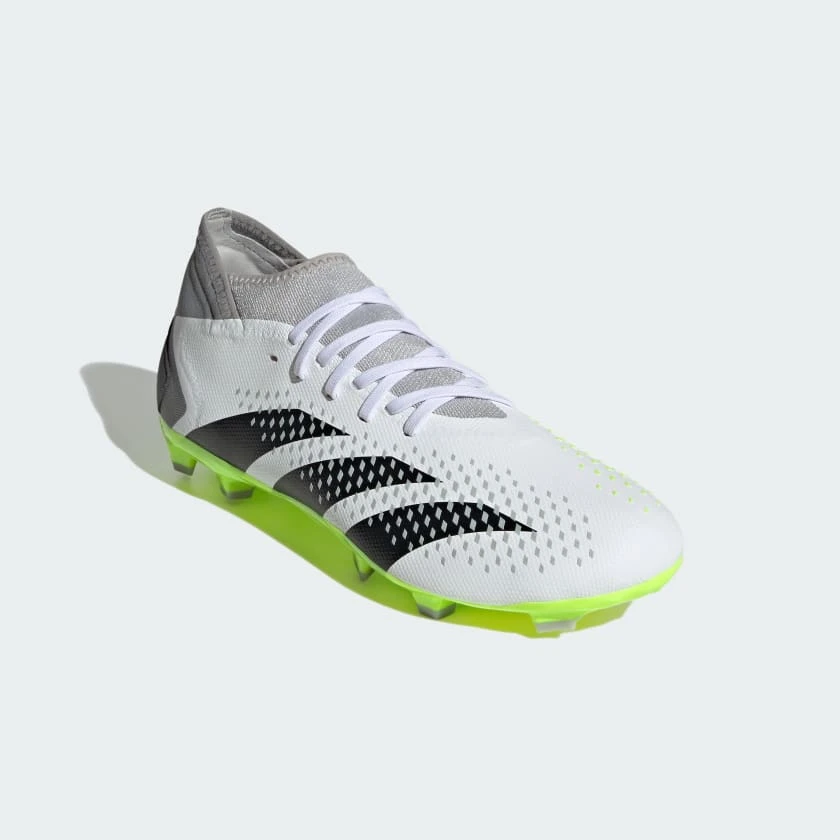 Top corner. Bottom corner. All the corners. adidas Predator Accuracy is crafted for goalscoring, so you know the ball will find the net. The fun's in choosing how it gets there. These football boots have a durable, coated textile forefoot that's covered in High Definition Texture for added grip on the ball. The firm ground outsole specialises in keeping you in control on dry, natural grass pitches. Made with a series of recycled materials, this upper features at least 50% recycled content. This product represents just one of our solutions to help end plastic waste.