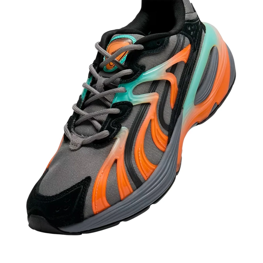 Innovation meets design with these boundary-pushing kicks. Featuring a textile base, leather overlays with deep debossed patterns, and a translucent TPU cage, every detail speaks to individuality. The TPU heatcut Formstrip and PUMA branding on gel accents bring bold energy to your every move.