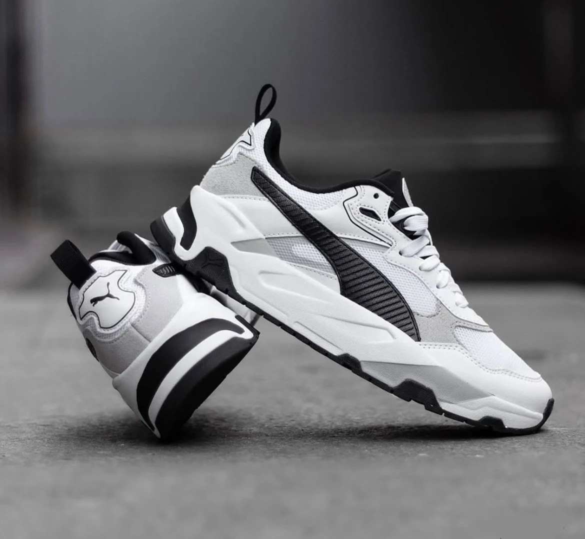 The Trinity is all about our Futro aesthetic, taking heritage inspiration and reinterpreting it with a modern twist. This edition features a mesh base with cool overlay details and a sporty silhouette, for sneakers that pack a punch. Best of all, the SoftFoam+ sockliner keeps you feeling comfortable all day long.Recycled Content: The upper of this shoe is made with at least 20% recycled materials as a step toward a better futureSOFTFOAM+: Step-in comfort sockliner designed to provide soft cushioning thanks to its extra thick heelMesh upper with synthetic overlaysIMEVA midsoleFull rubber outsoleFutro aestheticPUMA Formstrip on medial and lateral sidesPUMA Cat Logo on back heel