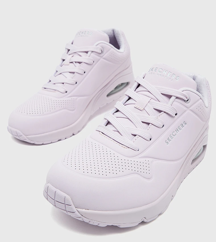 Classic air cushioning comfort gets a fresh look with the Skechers Street Uno Stand-On Air sneakers. This stylish shoe features a lace-up front and a soft upper with perforated details for a modern touch, along with an air-cooled memory foam insole for all-day comfort and a visible Skech Air midsole for excellent shock absorption and stability with every step.