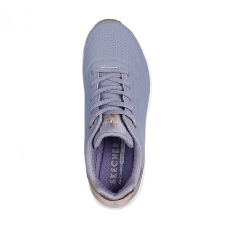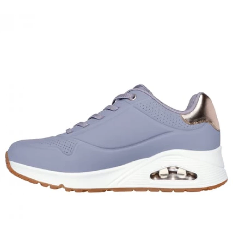 Embrace classic style this season with the Skechers Street™ Uno Shimmer Away sneaker. These stylish sneakers are designed to elevate your everyday look while providing exceptional support and cushioning. The upper is made of durable Dura-Pock synthetic material, ensuring longevity and a sleek appearance. Metallic heel trim adds a touch of subtle shine, enhancing the overall aesthetic. The design includes elastic laces for a secure and comfortable fit, making them easy to slip on and off. Inside, you'll find Skechers Air-Cooled Memory Foam® insole, which adapts to the shape of your foot, providing customized comfort and support with every step. This innovative insole helps keep your feet cool and comfortable, even during extended wear. The Skech-Air® midsole with visible air cushioning is a standout feature, offering superior shock absorption and cushioning. This technology not only enhances comfort but also adds a sporty, modern touch to the design. The wedge design provides a subtle lift, adding a touch of sophistication to the classic sneaker silhouette. These sneakers are perfect for a variety of occasions, from casual outings to everyday wear. The combination of style, comfort, and durability makes them a versatile addition to any wardrobe. Skechers Street™ Uno - Shimmer Away sneakers are designed for women who appreciate both fashion and practicality. The stylish design and comfortable features make them ideal for all-day wear, whether you're running errands, meeting up with friends, or simply enjoying a fun day out. The metallic heel trim adds a touch of sophistication, while the elastic laces ensure a secure and comfortable fit. Skechers' Air-Cooled Memory Foam® insole and Skech-Air® midsole with visible air cushioning work together to provide exceptional cushioning and support, making these sneakers a joy to wear. Experience the perfect blend of style and comfort with Skechers Street™ Uno - Shimmer Away sneakers. These sneakers are a testament to Skechers' commitment to quality and innovation, offering a stylish and comfortable footwear option for the modern woman. The robust construction and thoughtful design details ensure that these sneakers will become a favorite in your footwear collection.