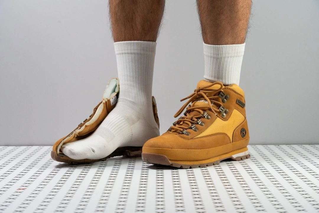 An icon generations in the making, the Euro Hiker Mid Lace-Up Boot is Timberland heritage-inspired with a distinctly modern feel for those who appreciate an elevated take on the classics. An upper combining Premium Timberland® Leather and canvas takes comfort and durability to a new level. Inside, a ReBOTL™ fabric lining made from at least 50% recycled plastic brings a new element to a timeless style. The lightweight EVA footbed provides all-day cushioning and support while a rugged rubber lug outsole helps keep you grounded.