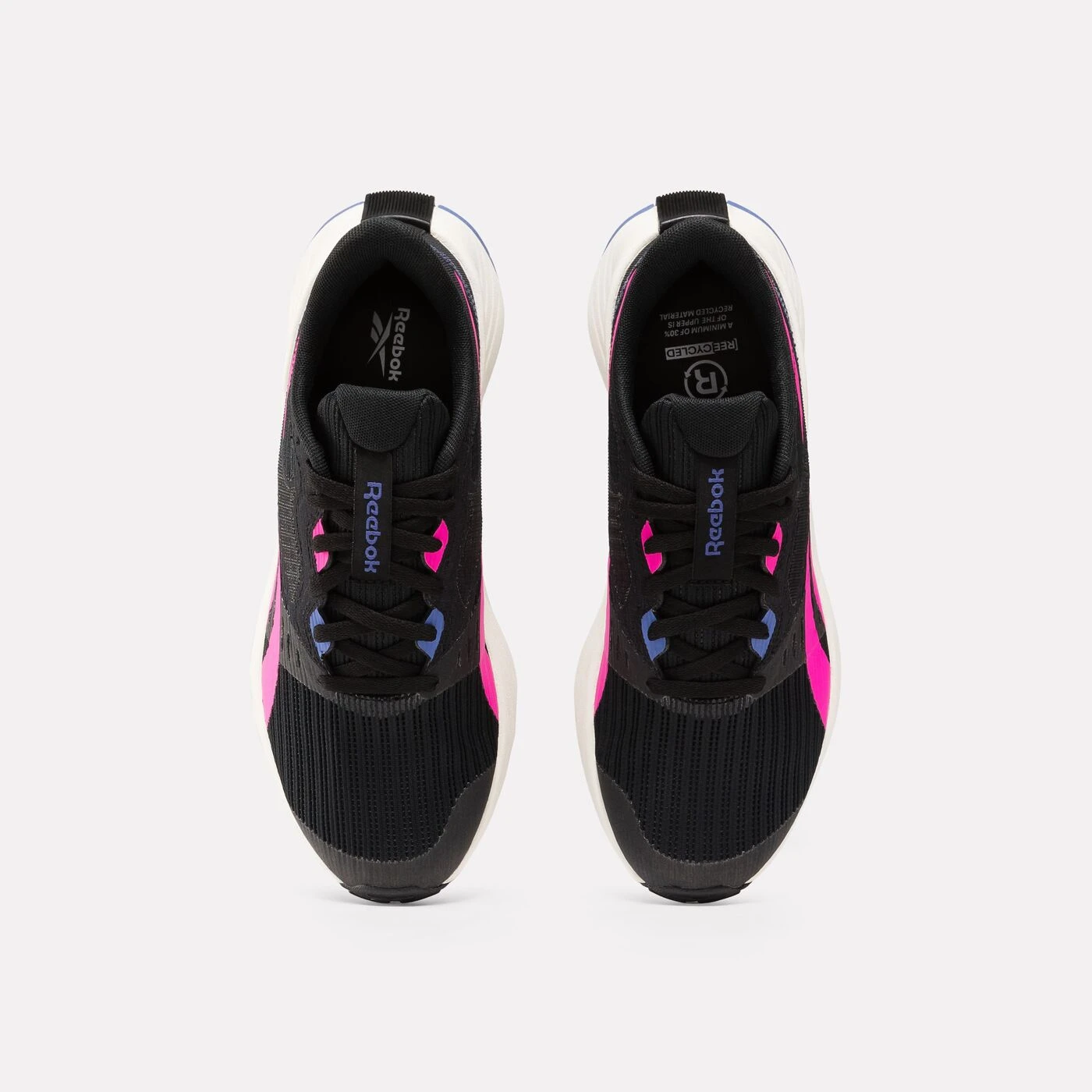 The [REE]CYCLED model contains at least 30% recycled or reused materials. These shoes feature a standard fit and a textile upper. They are specifically designed for running and feature a lace-up closure.